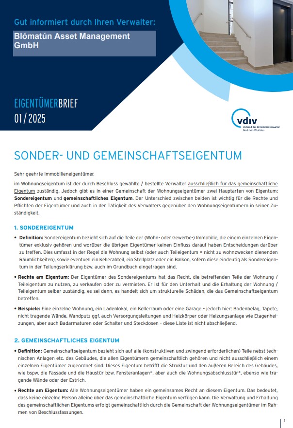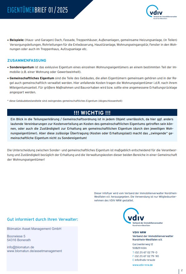 Aktueller Eigentümerbrief VDIV Verband: Sonder- und Gemeinschaftseigentum
