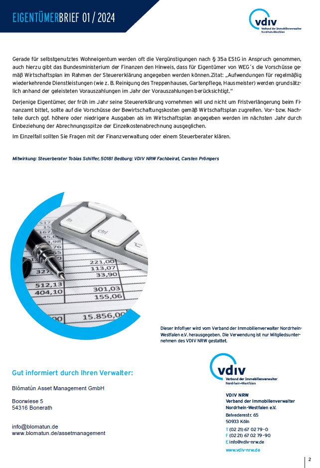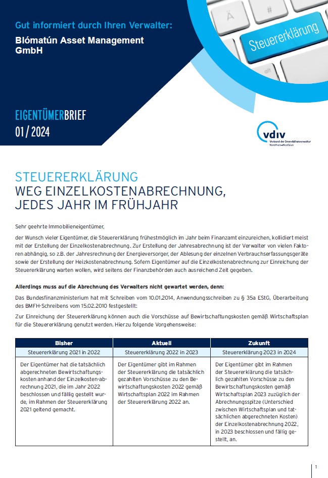 Aktueller Eigentümerbrief VDIV Verband: WEG EINZELKOSTENABRECHNUNG