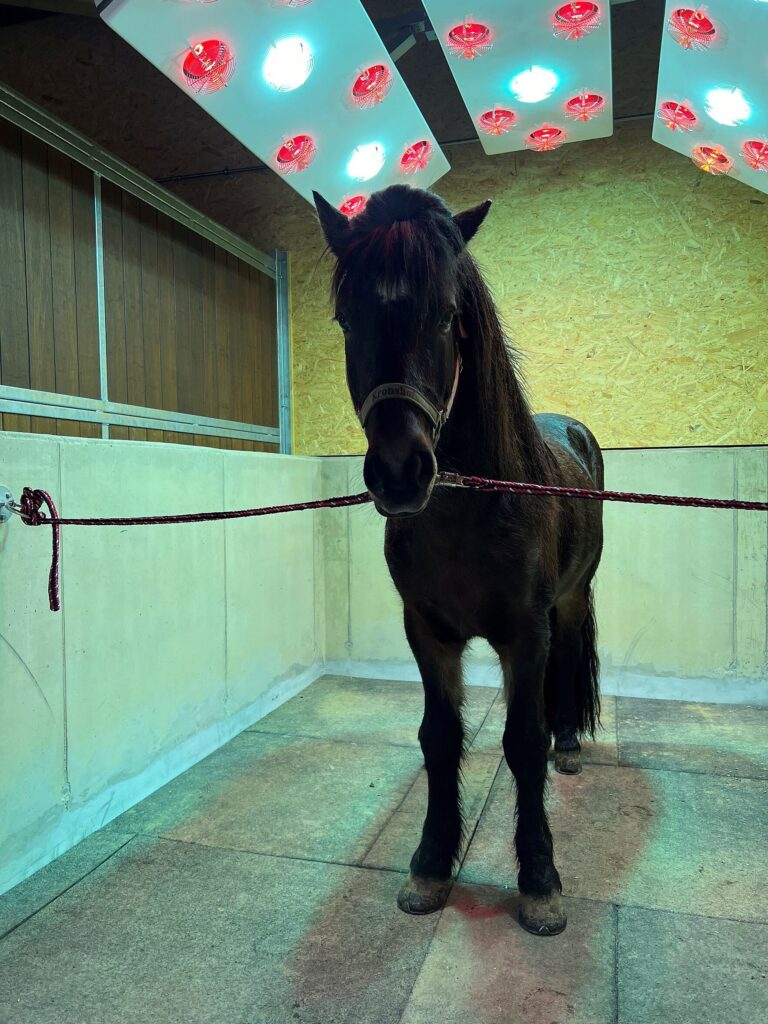 Unser Solarium hat mit seiner Infrarot-Wärme-Strahlung und Warmluftventilatoren eine therapeutische Wirkung und zeigt in vielerlei Hinsicht positive Effekte und eine gesundheitliche Verbesserung des Pferdes. So lösen sich bei regelmäßiger Anwendung Verspannungen im Rückenbereich sowie Muskelkater und Verspannungen. Aufgrund der Wärme bedingten Erweiterung der Blutgefäße kommt es zu einer besseren Durchblutung. Auch das tieferliegende Gewebe wird durch die Besonnung stärker durchblutet. Die Infrarot-Strahlung hat insgesamt einen positiven Einfluss auf den Pferdekörper. Nicht nur die Vitalität des Pferdes nimmt zu, auch die Leistungsfähigkeit wird gesteigert. Der Muskelstoffwechsel wird angeregt und die Zyklustätigkeit bei Zuchtsuten nimmt zu.